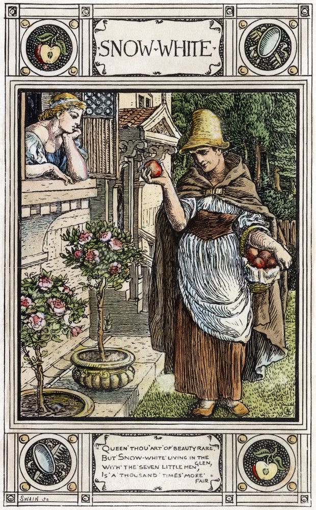 The hyperbole of Snow White being ten thousand times more fair has been reduced and edited down to a mere thousand times more fair, still an obvious exaggeration but not an absurd one, and this simple change by the Grimm brothers strengthens its impact. This message of a beautiful young girl surpassing an aging beauty has led many people studying this tale to ask, “Whose is the voice of the mirror?”
